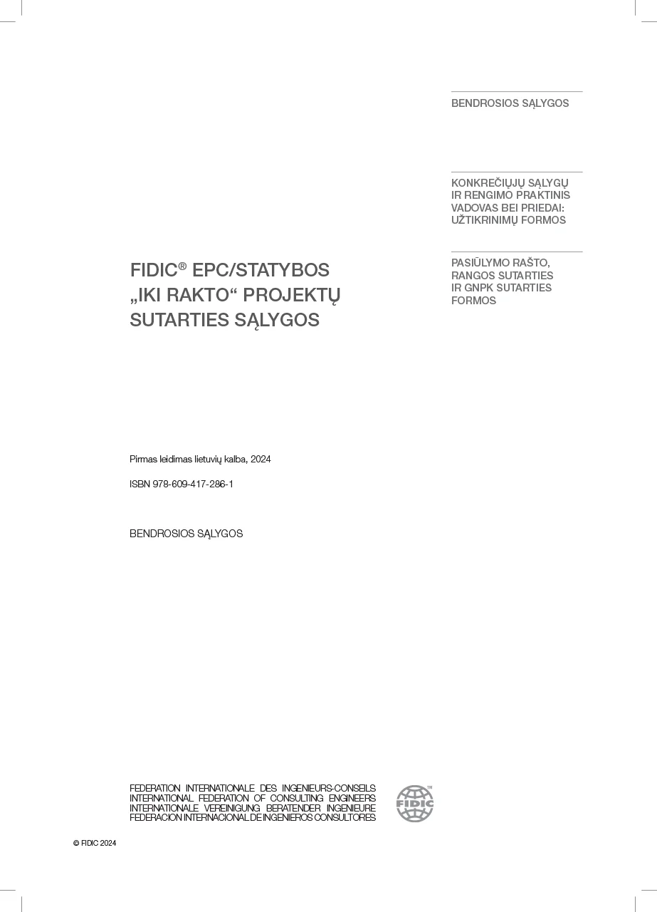 FIDIC® EPC/Statybos „iki rakto“ sutarties sąlygos, žinomos kaip Sidabrinė knyga, yra viena iš pagrindinių tarptautiniu mastu pripažintų sutarčių formų, skirtų projektams, kuriuose užsakovas siekia galutinio rezultato minimaliomis pastangomis. Šioje sutartyje rangovas atsako už visą projektavimo, statybos ir tinkamumo naudoti užtikrinimo procesą. 2017 metais atnaujintas ir 2022 metais patikslintas Sidabrinės knygos antrasis leidimas anglų kalba yra dar labiau pritaikytas šiuolaikiniams projektų valdymo poreikiams, sustiprintas rizikos ir atsakomybės paskirstymas tarp užsakovo ir rangovo bei įtrauktos patobulintos ginčų prevencijos ir sprendimo procedūros. 2024 metais išleistas pirmas Sidabrinės knygos leidimas lietuvių kalba.