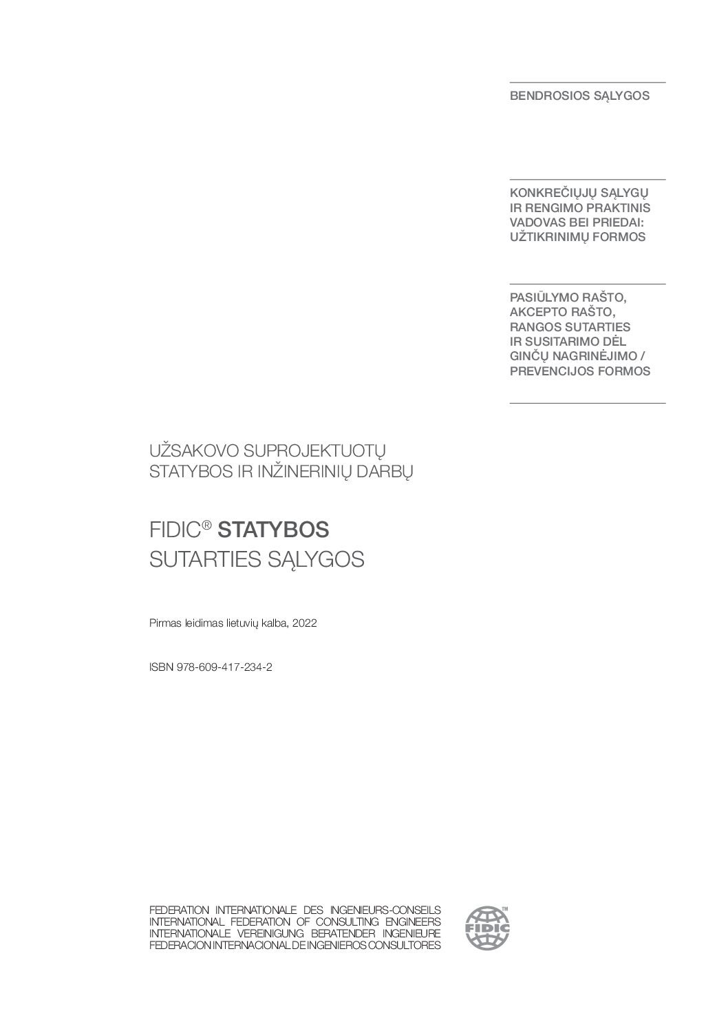 Raudonoji knyga pateikia gaires, skirtas užtikrinti užsakovo parengto projekto nuoseklų ir sklandų įgyvendinimą, o rangovui – galimybę vykdyti darbus, laikantis nustatytų kokybės ir vykdymo standartų. Leidinyje išdėstyti principai bei tipinių sutarčių sąlygų nuostatos sudaro sąlygas sukurti sąžiningą, skaidrų ir subalansuotą sutarties modelį, kuris palengvina didelės apimties projektų įgyvendinimo valdymą ir padeda sumažinti ginčų atsiradimo riziką.